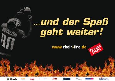 The carnival days attract a million people yearly to the Rhine and to Dusseldorf. This is an ideal time to catch the attention of a big audience. On time for the crazy time, our poster campaign for Rhine Fire shines from many corners of the city to the passer by. The campaign promotes the start of ticket sales for the games of the new season. The first positive resonance of Rhine Fire fans followed promptly.